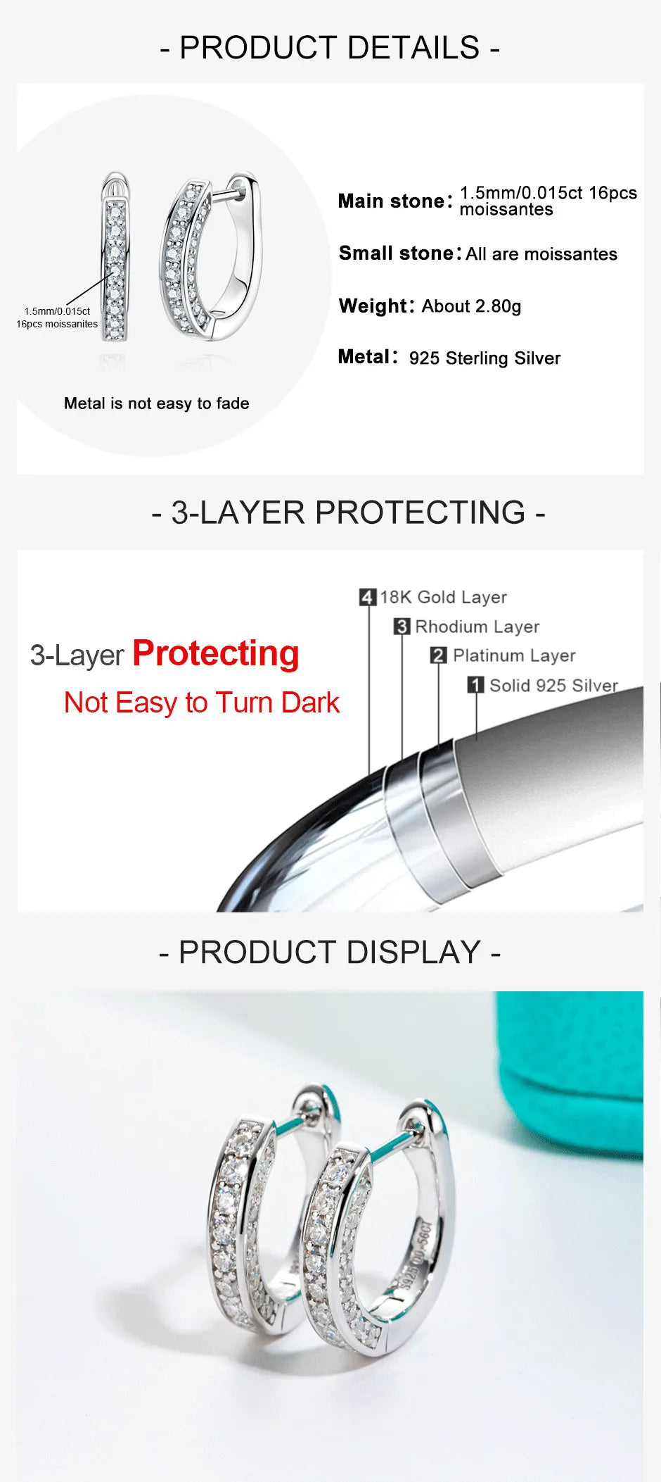 - 925 Sterling Silver: High-quality, durable material that is hypoallergenic for comfortable wear.