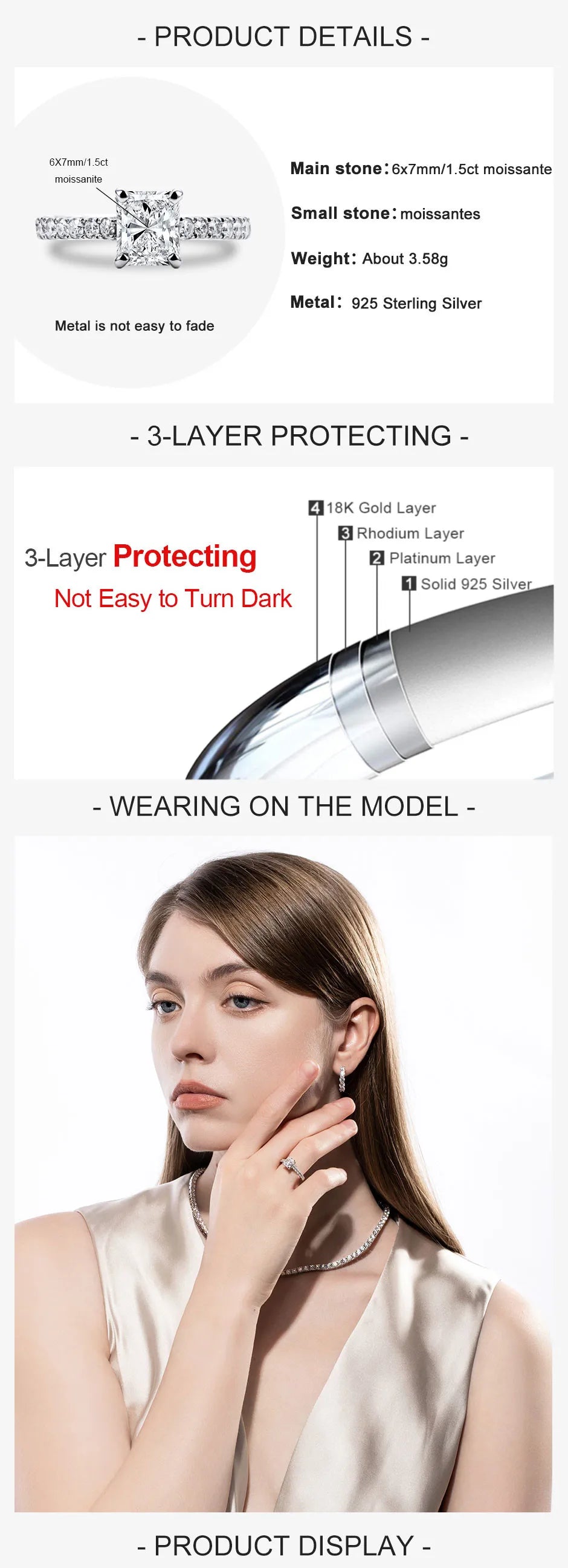 Discover the perfect blend of elegance and sophistication with the GK Moissanites 1.5 Carat Radiant Cut D Color Moissanite Ring. This stunning ring features a captivating radiant cut moissanite, set in a luxurious 18K gold-plated band over durable 925 sterling silver. With its D color grade, this ring radiates exceptional brilliance and clarity, making it an ideal choice for engagements, weddings, or special occasions.
