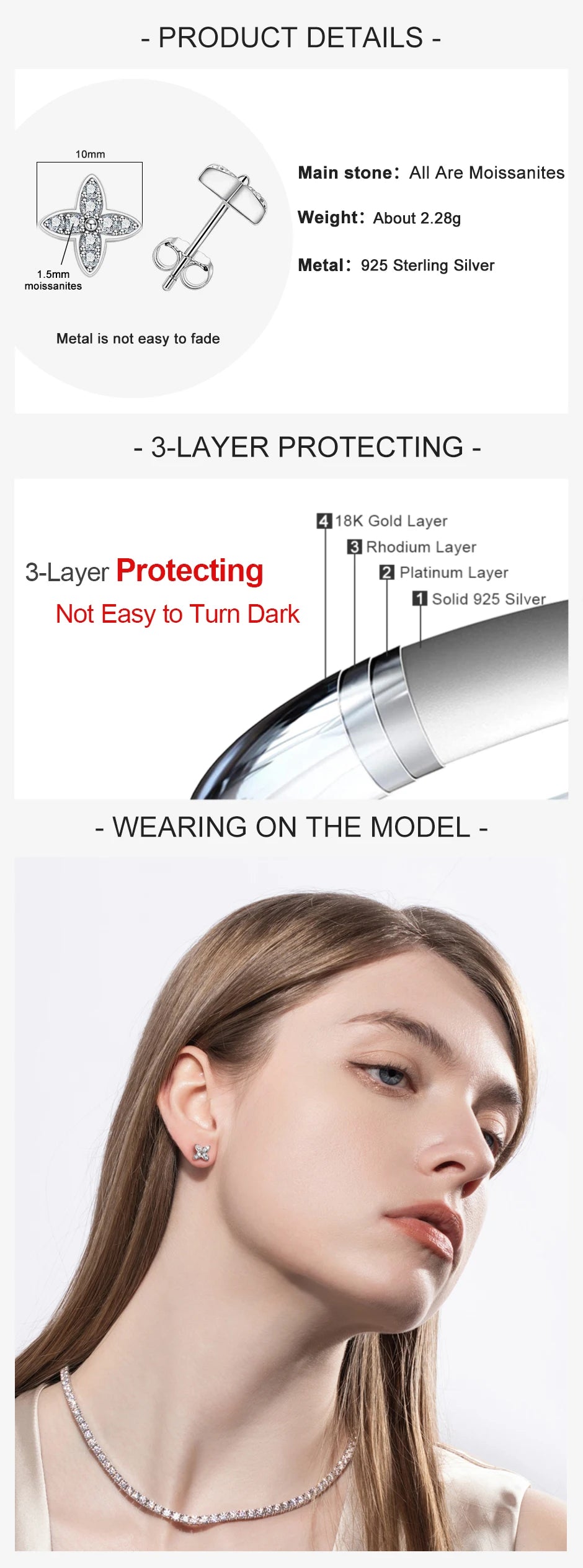 - 925 Sterling Silver Material: Durable and hypoallergenic, ensuring safe and long-lasting wear.