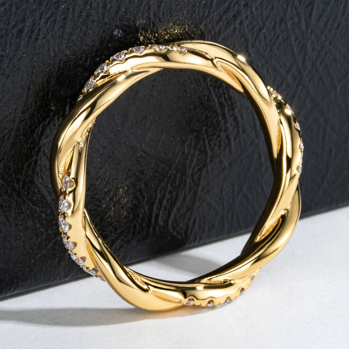 Celebrate everlasting love with this elegant infinity wedding band. Featuring 1.5MM D Color moissanite diamonds, this eternity ring is crafted in a yellow gold-plated 925 sterling silver setting, radiating sophistication and timeless beauty. The infinity design symbolizes endless commitment and unity, making it the perfect choice for weddings, anniversaries, or as a statement piece in your fine jewelry collection.