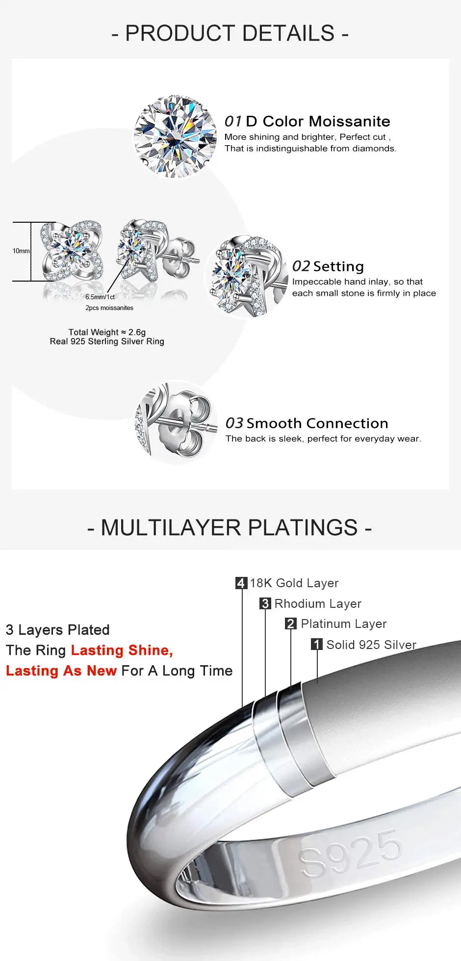 - 1 Carat Total Weight (cttw): Beautifully crafted with moissanite stones that capture the light from every angle.