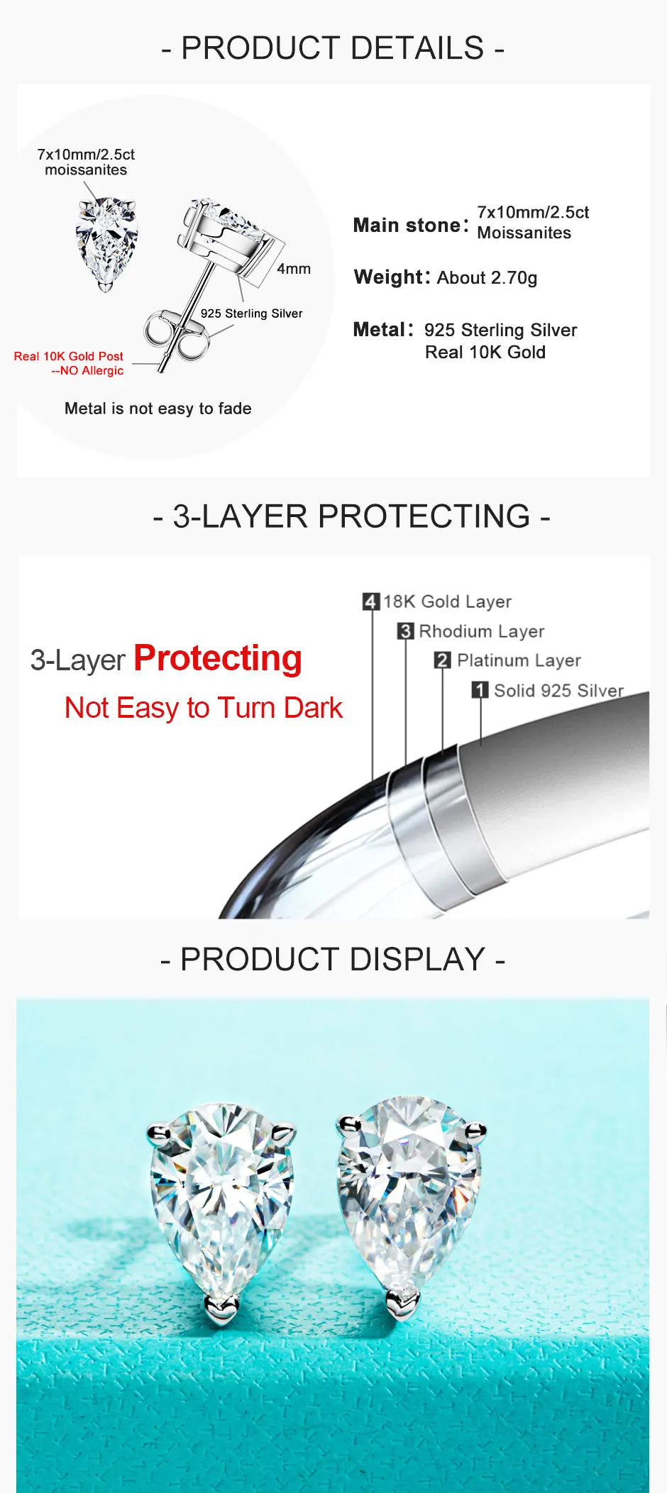 Elevate your jewelry collection with these 5/2/1.2ct Pear Cut Moissanite Stud Earrings, crafted with 10K Gold Posts for a refined and elegant look. Designed with the modern woman in mind, these earrings blend sophistication with comfort, ensuring that you can wear them with confidence all day.