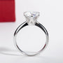 The prong setting securely holds the moissanite while enhancing its natural brilliance.