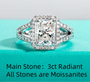Main Stone: 3 Carat Radiant Cut Moissanite (D Color, VVS1)