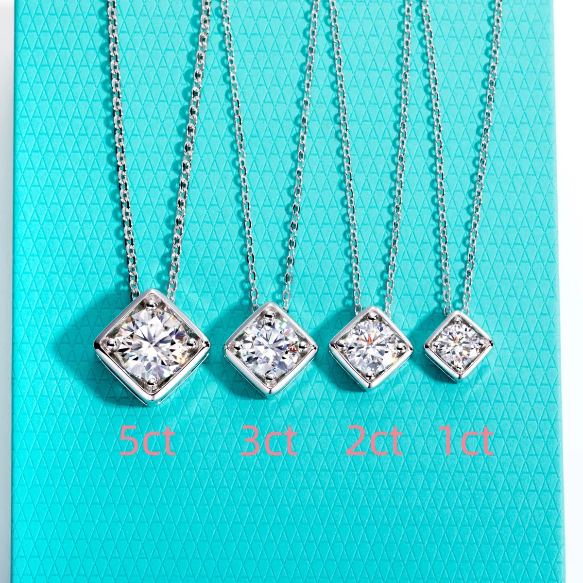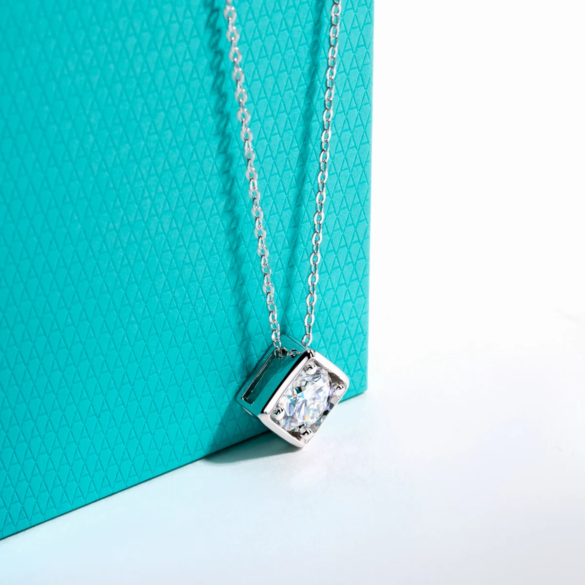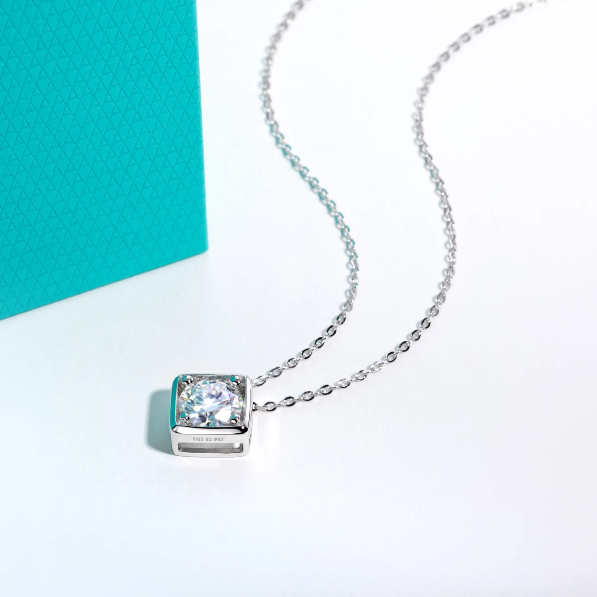 A sleek square-cut moissanite solitaire pendant, offering refined brilliance and understated luxury.