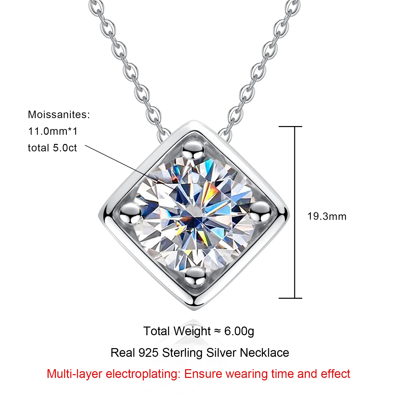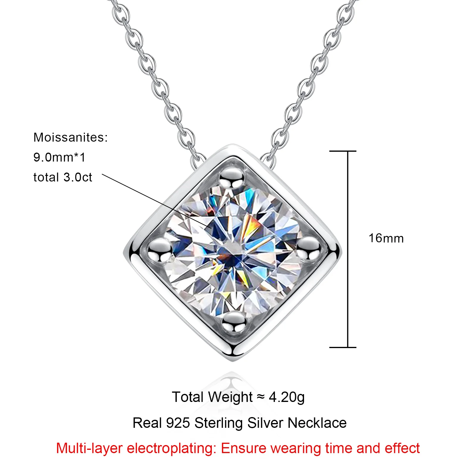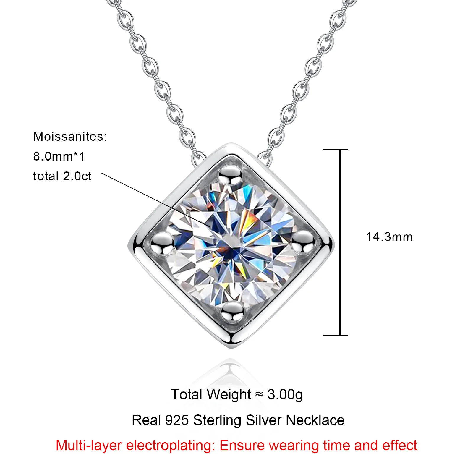 Main Stone: Square-Cut Moissanite (D Color, VVS Clarity)