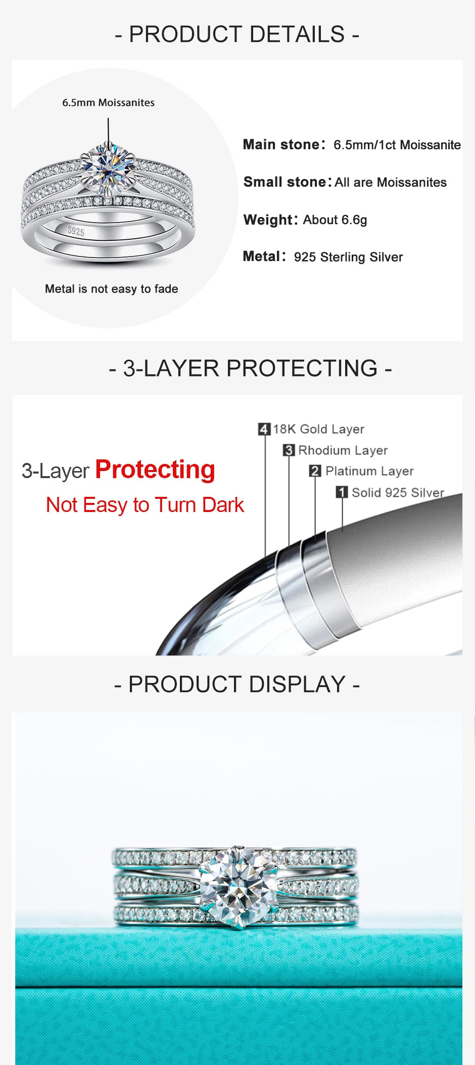 - 925 Sterling Silver: Crafted from premium, hypoallergenic sterling silver, this ring set offers both durability and comfort for everyday wear, while maintaining its radiant shine.