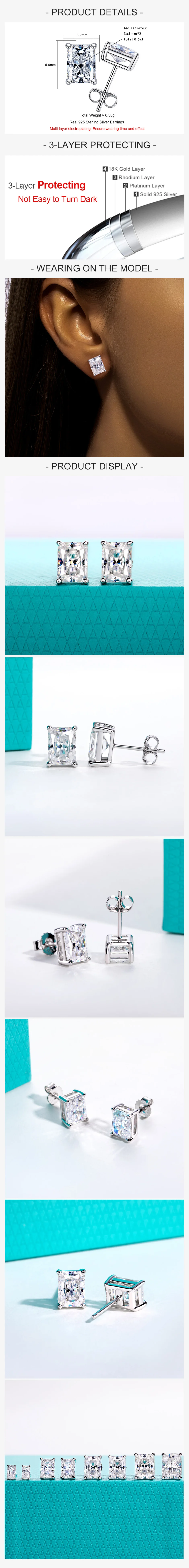 VVS1 D Color Radiant Cut Moissanite Stud Earrings