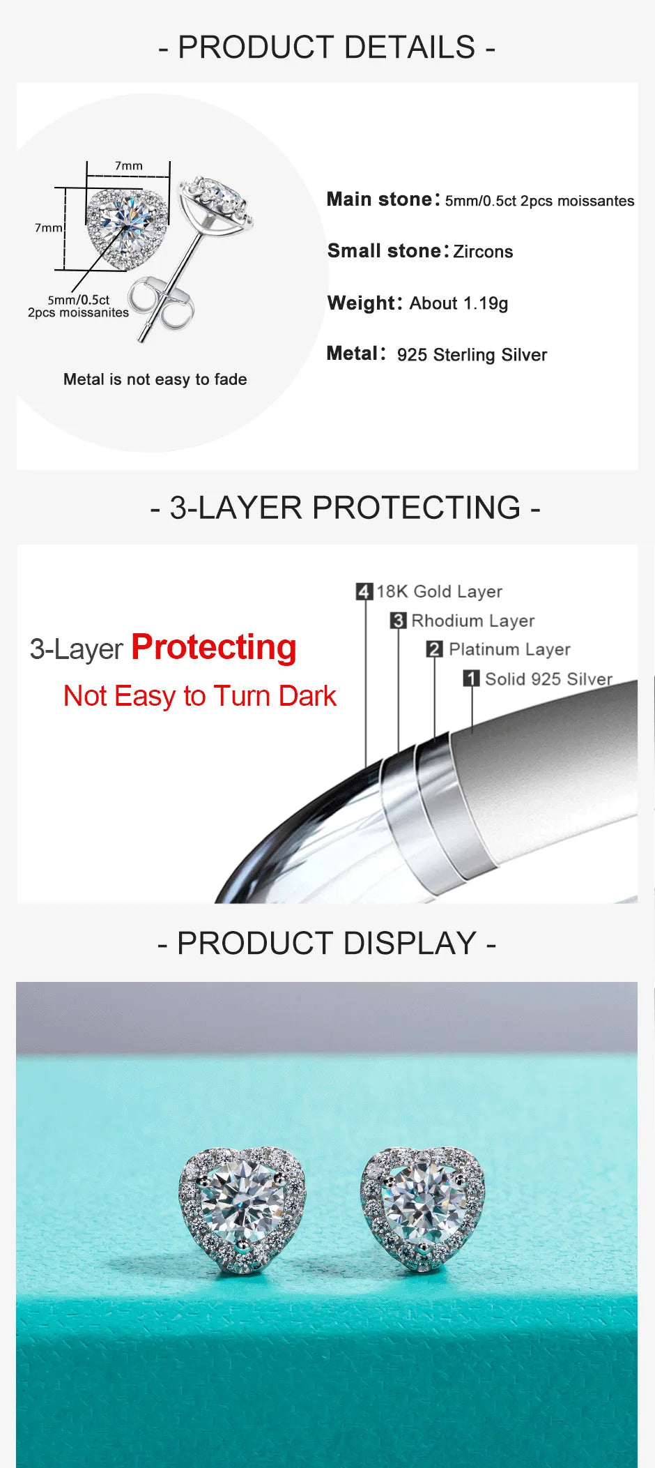 These D Color Moissanite Heart Stud Earrings are perfect for celebrating life's most cherished moments, whether it's an anniversary, birthday, or just because. Show your love with a gift that sparkles as brightly as your feelings.