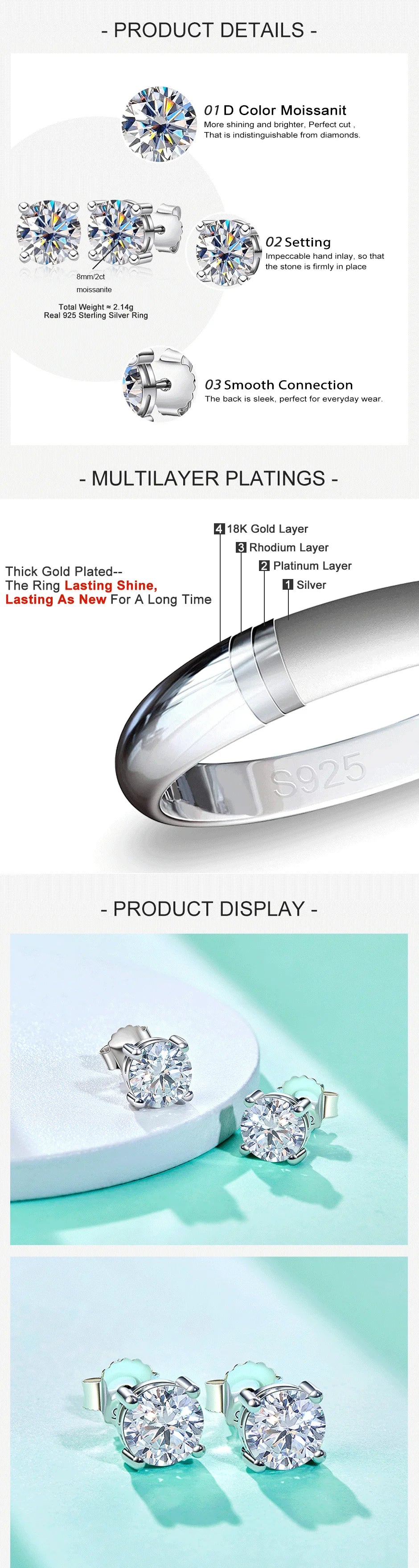 - 2ct D Color Moissanite Stones: Radiates exceptional brilliance with near-colorless clarity.