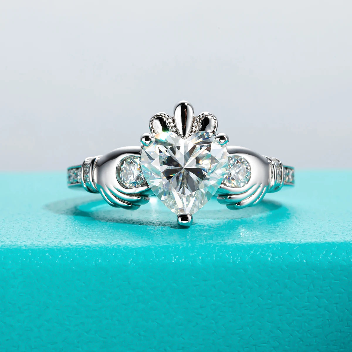 1 × Moissanite Claddagh Heart Ring