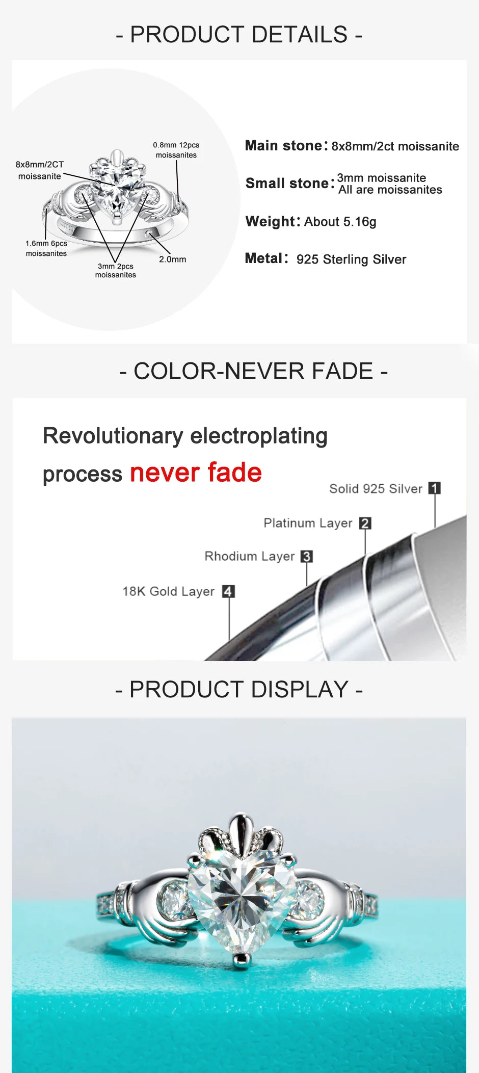 Features a high-quality heart-shaped moissanite that radiates diamond-like brilliance and clarity.