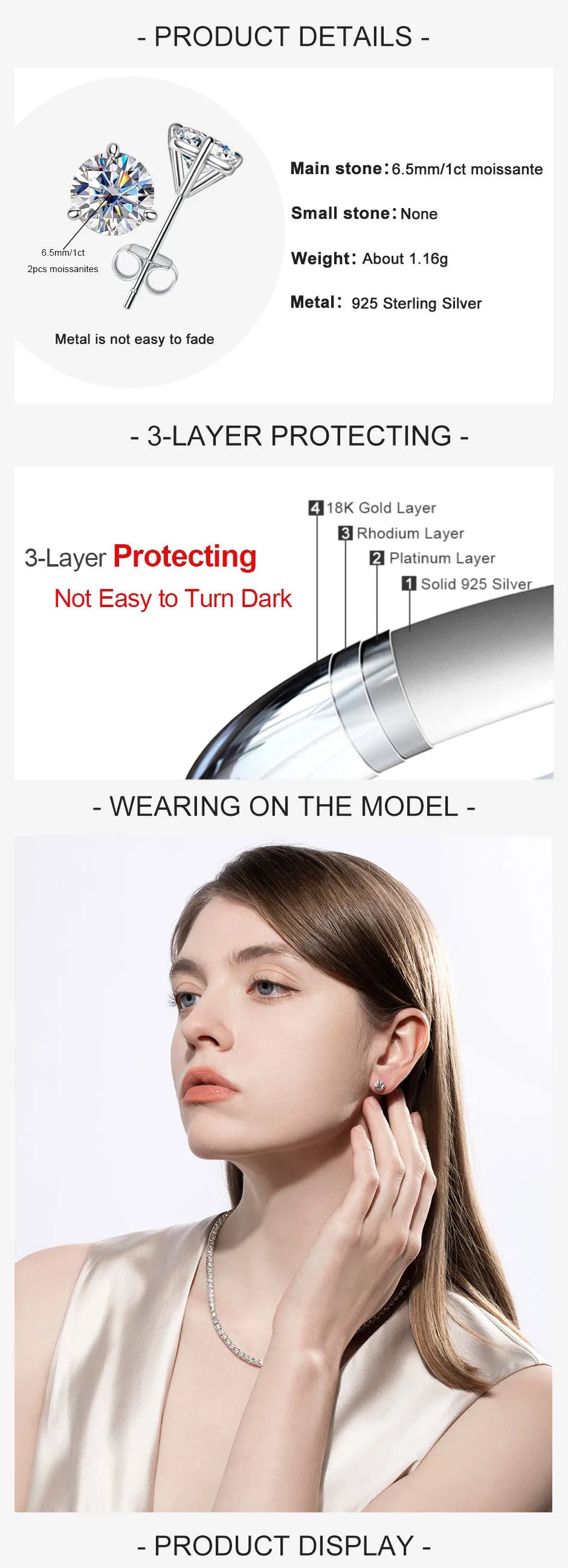 These Moissanite Diamond Stud Earrings are the perfect accessory for celebrating special moments or adding a touch of elegance to your daily ensemble. Their enduring design and radiant sparkle make them a classic choice for any jewelry lover.