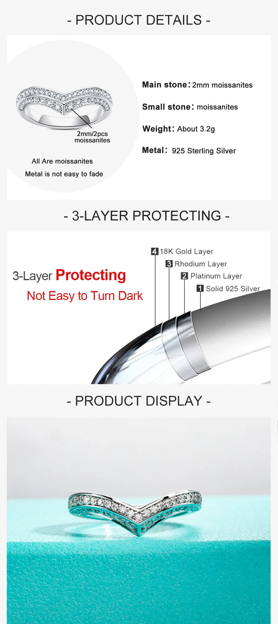 Celebrate your love with the GK Moissanites 2mm D Color Moissanite V Shape Wedding Bands. This elegant bridal set features a unique V-shaped design, adorned with sparkling 2mm D Color Moissanites, set in 925 sterling silver with 18k gold plating.