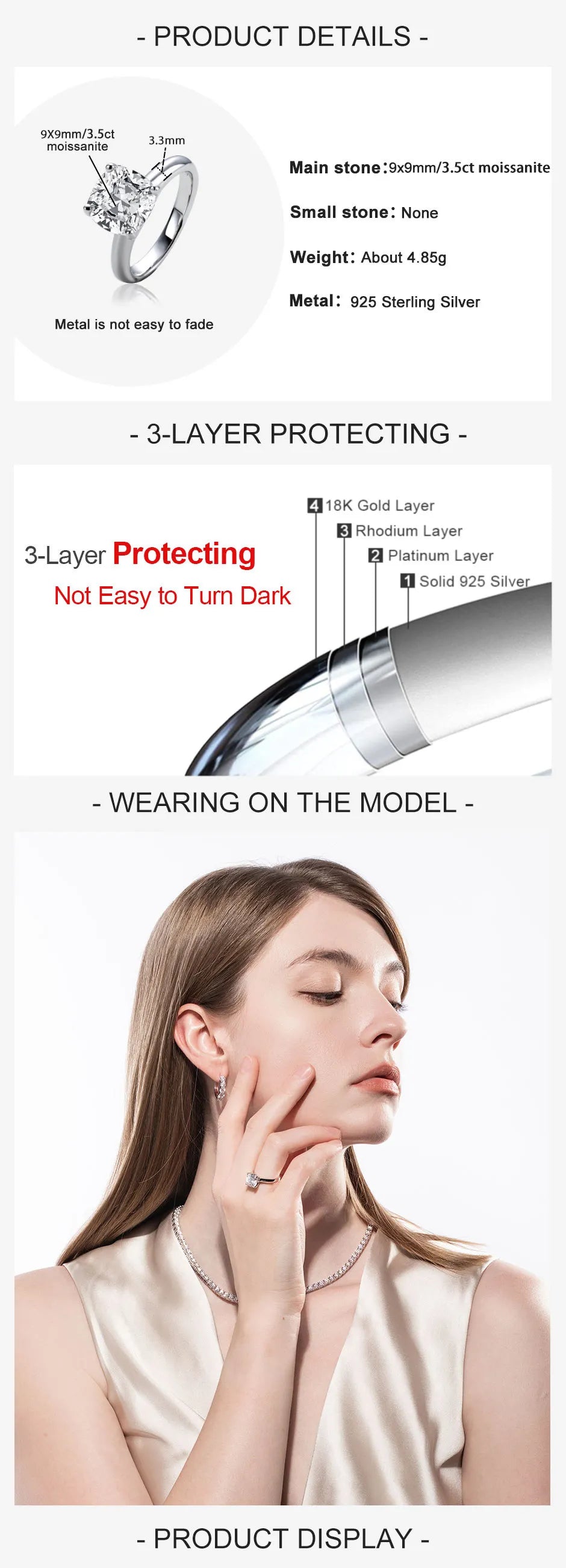 This ring is carefully crafted from high-quality 925 sterling silver, ensuring both durability and sophistication. The prong setting secures the moissanite in place while maximizing its light reflection from every angle, creating a luminous effect that rivals natural diamonds.