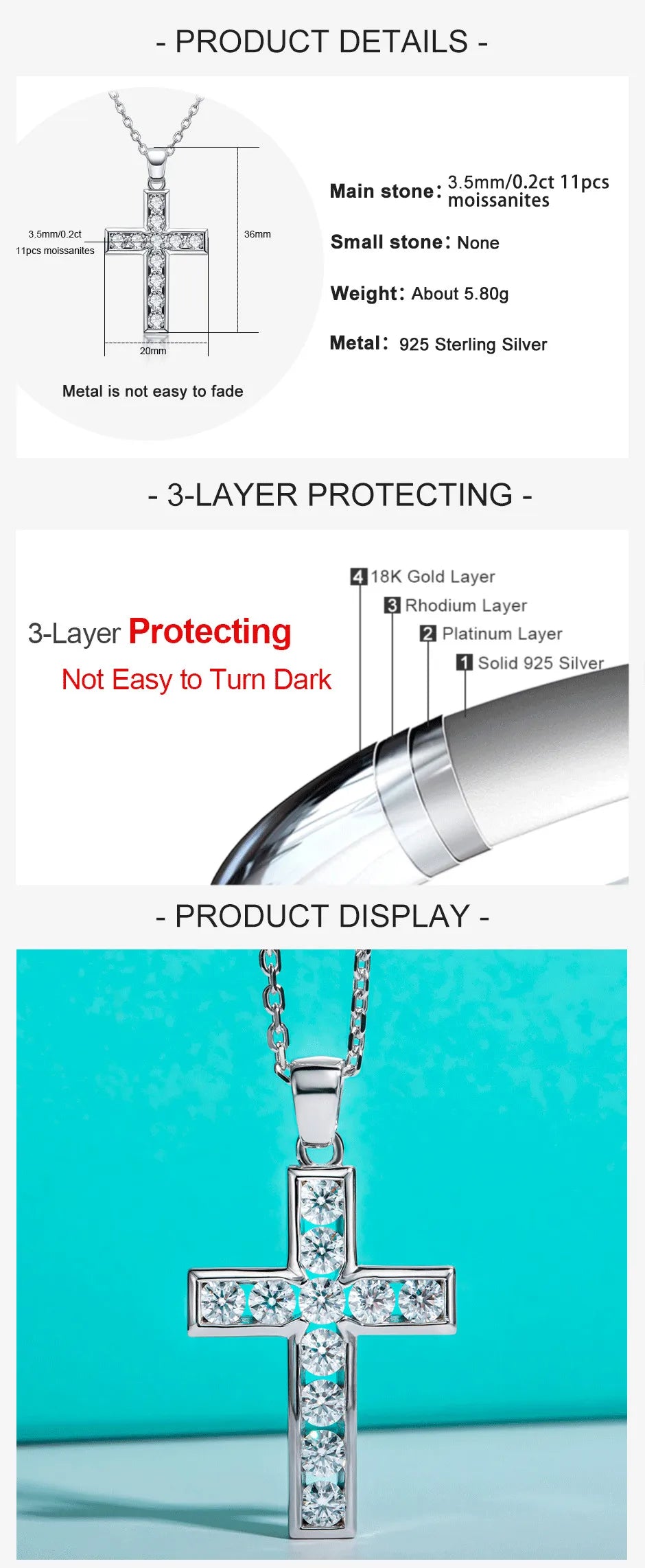 Add a touch of elegance and faith to your jewelry collection with this stunning cross pendant necklace. Featuring 2.2cttw of D Color moissanite diamonds set in a 3.5mm design, this piece radiates exceptional brilliance and sophistication. Crafted in 925 sterling silver, it is the perfect blend of luxury and timeless style, making it an ideal gift for special occasions or a personal statement of devotion.
