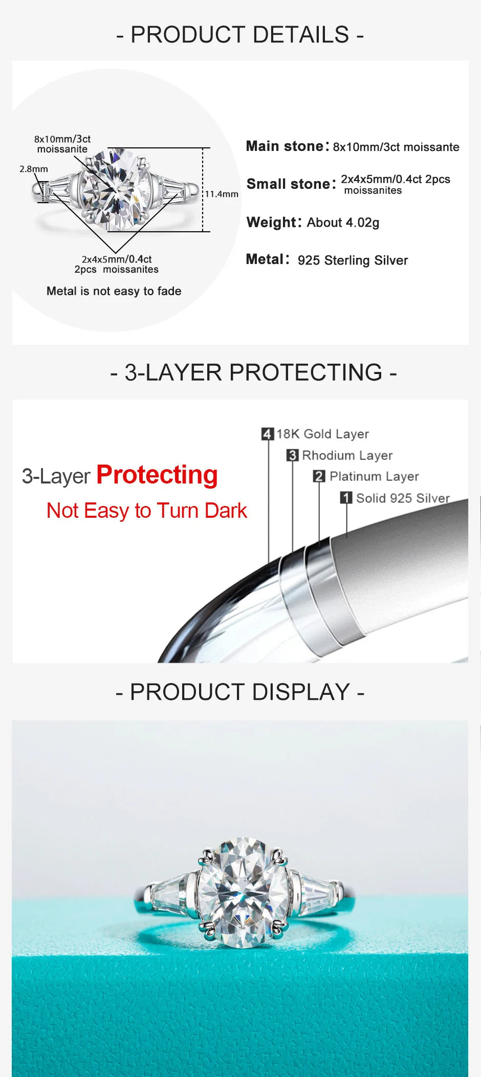 - 3.8cttw Oval Cut Moissanite: A magnificent oval-shaped stone with a total carat weight of 3.8 carats, offering exceptional sparkle and clarity.