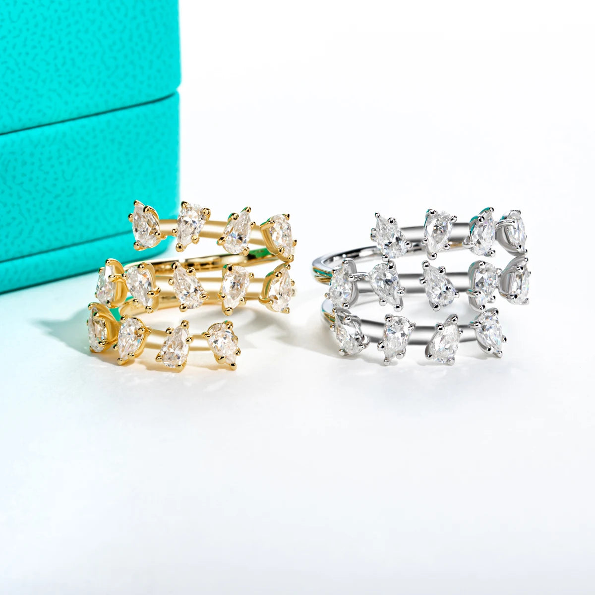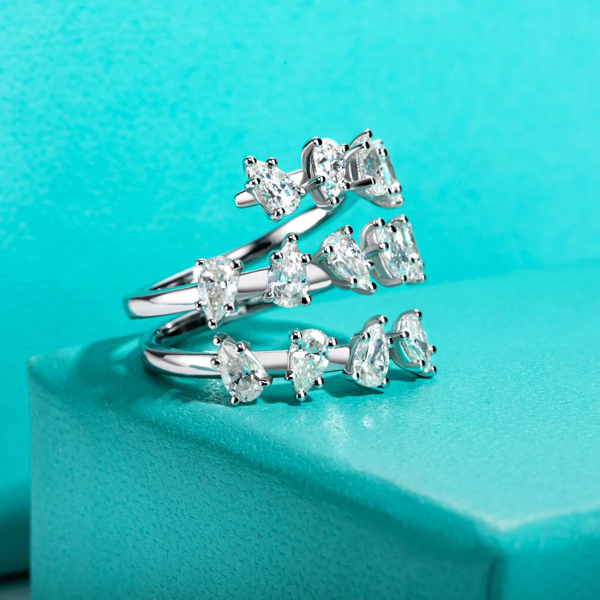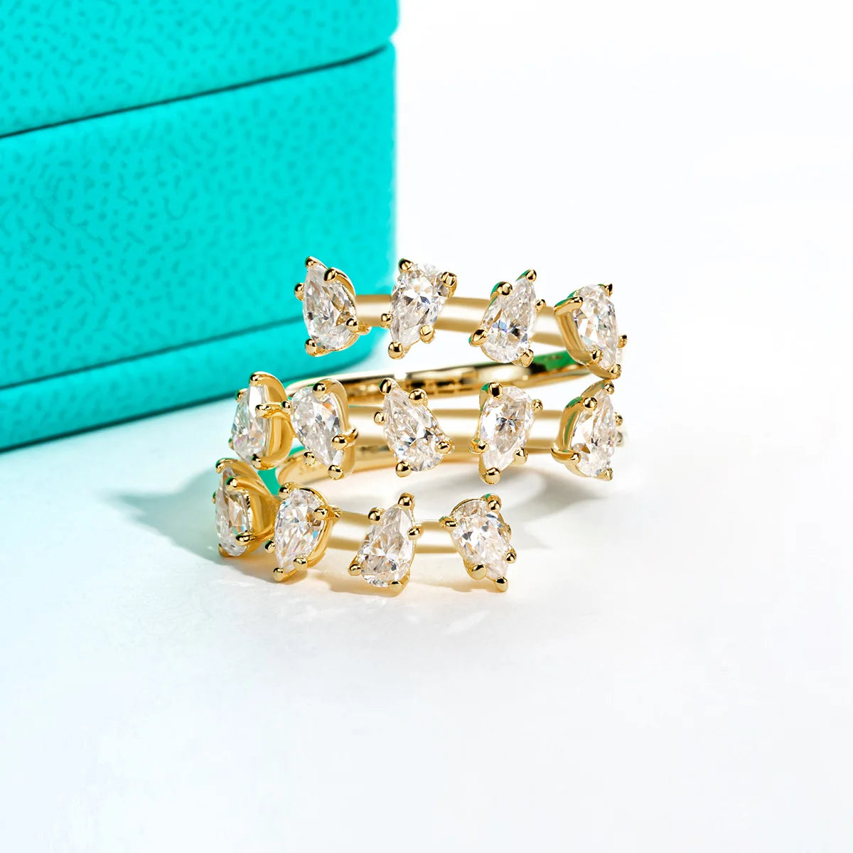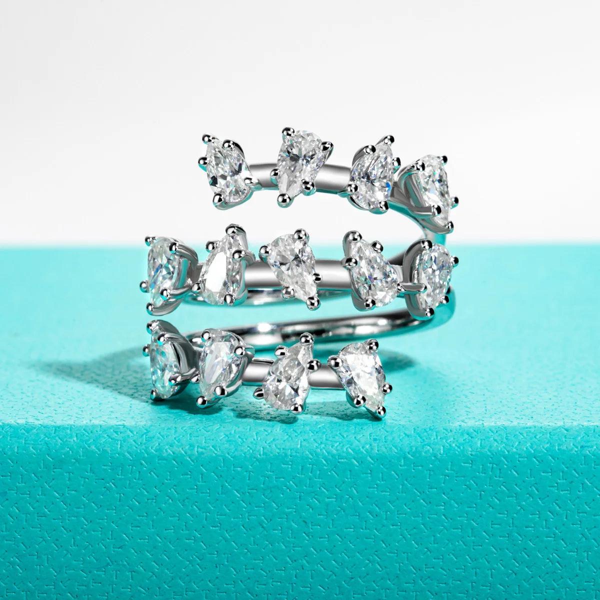 Celebrate your love with the GK Moissanites 3.9cttw Pear Cut Moissanite Wedding Band, a perfect blend of elegance, brilliance, and craftsmanship. Designed with a timeless style and an adjustable fit, this ring makes an unforgettable symbol of commitment for engagements, weddings, or anniversaries.