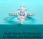 Premium Moissanite: 3ct D Color marquise cut stone for exceptional brilliance.