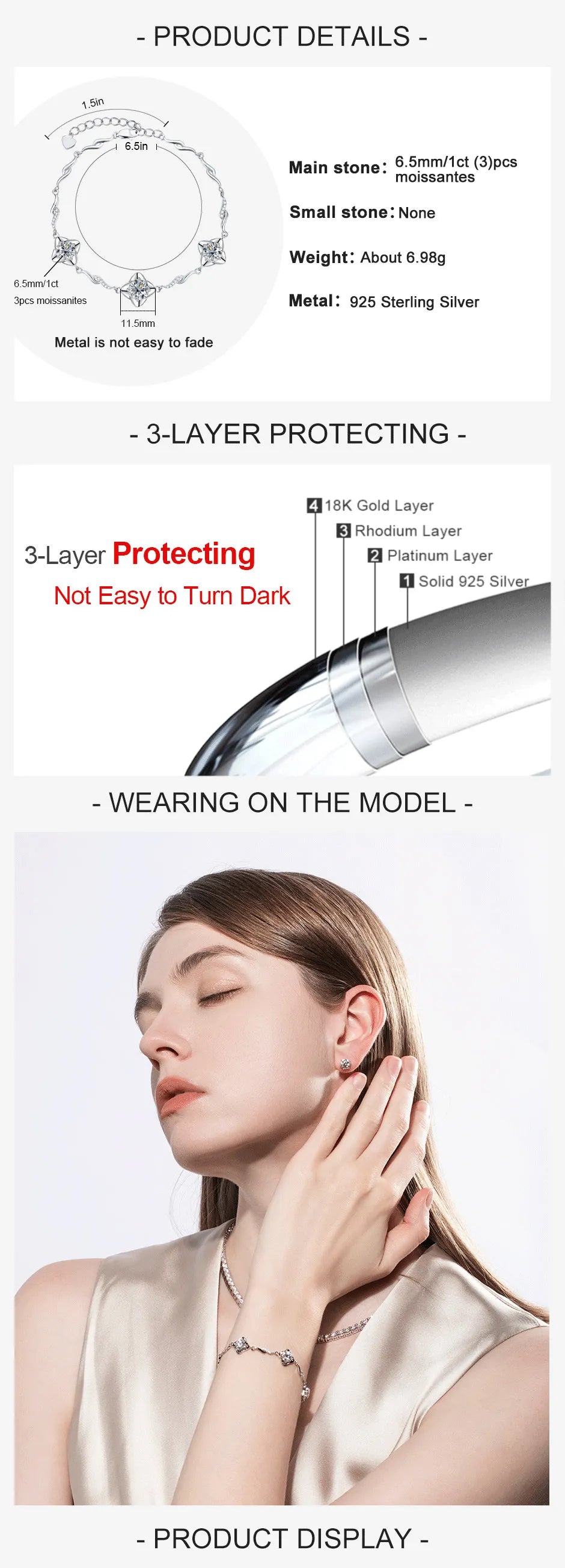 Discover the perfect harmony of elegance and symbolism with this stunning 3CTTW D Color Moissanite Four-Leaf Clover Bracelet. Crafted in 18K white gold-plated 925 sterling silver, this bracelet pairs radiant brilliance with a timeless emblem of luck, love, hope, and faith. Designed for both beauty and comfort, it’s the perfect accessory for meaningful gifting or everyday sophistication.