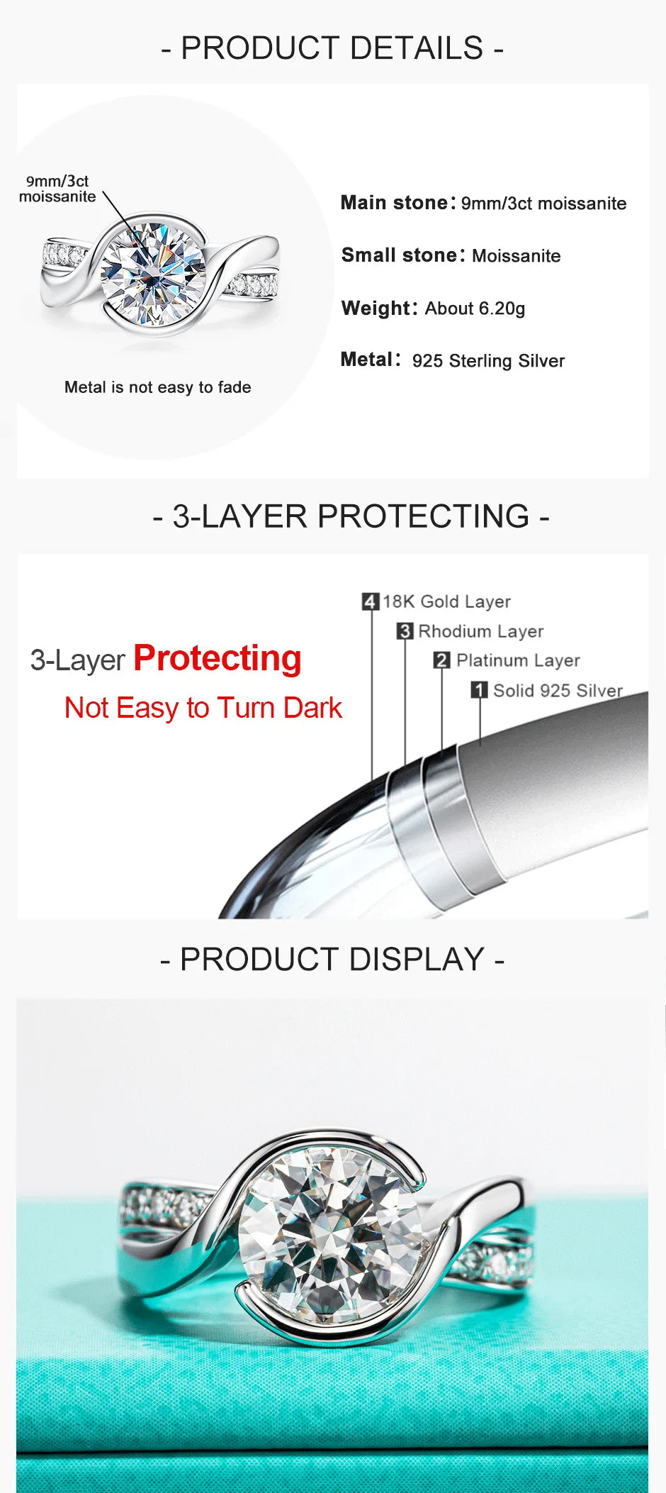 - 3ct Moissanite: A dazzling 3-carat moissanite stone that provides unmatched brilliance and sparkle.