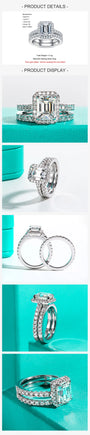 3CT Emerald Cut Moissanite Halo Bridal Ring Set