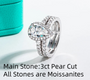 1 x 3CT Pear Cut Halo Moissanite Engagement Ring