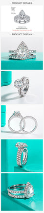 3CT Pear Cut Halo Moissanite Bridal Ring Set