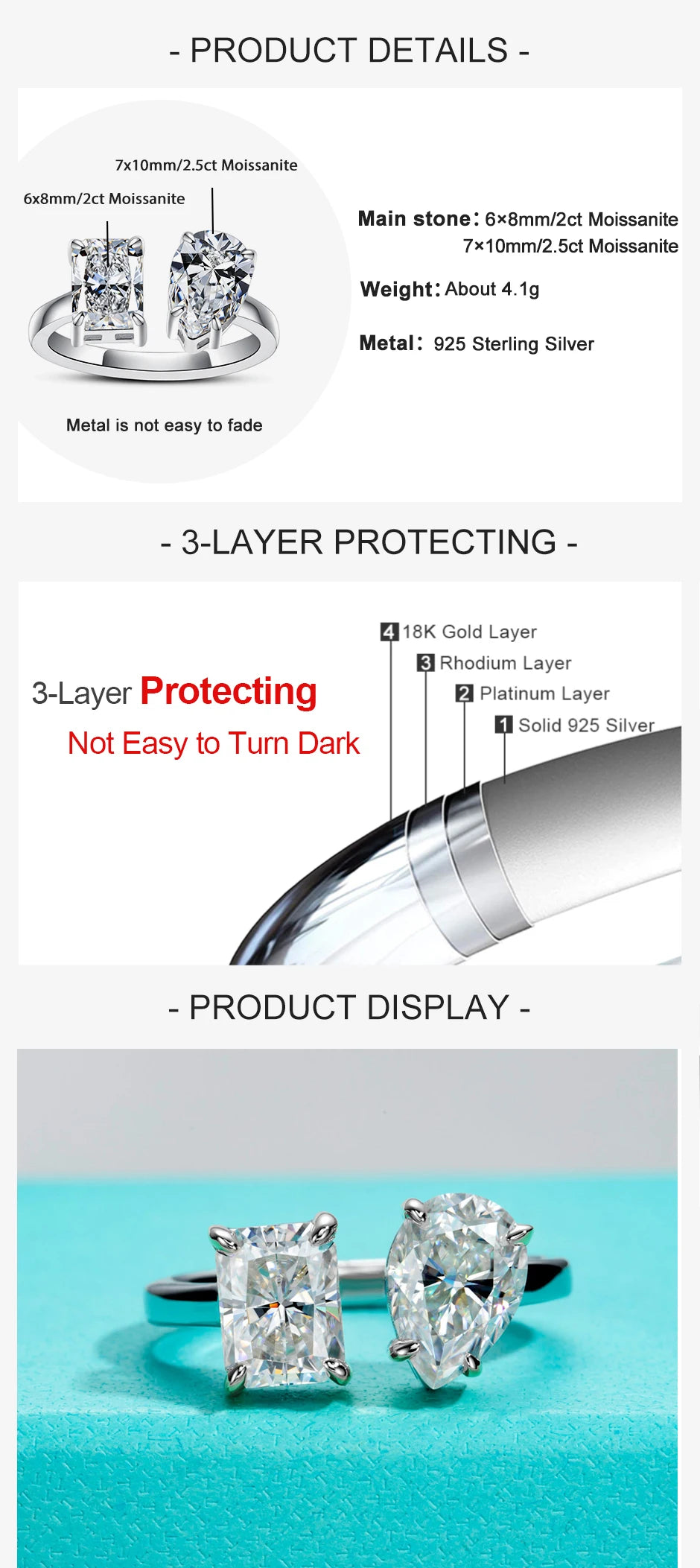 Whether you're celebrating an engagement, wedding, or simply looking for a statement piece, this 4.5cttw Radiant Pear Twins Moissanite Ring adds a touch of opulent beauty and practical comfort. Its striking design and brilliant sparkle make it an exceptional choice for those who appreciate luxury and elegance.