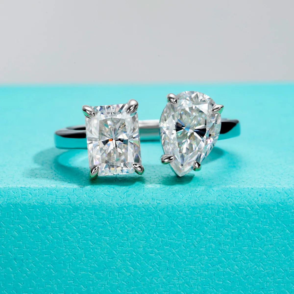 4.5 CTTW Radiant & Pear Cut Twins Moissanite Engagement Ring
