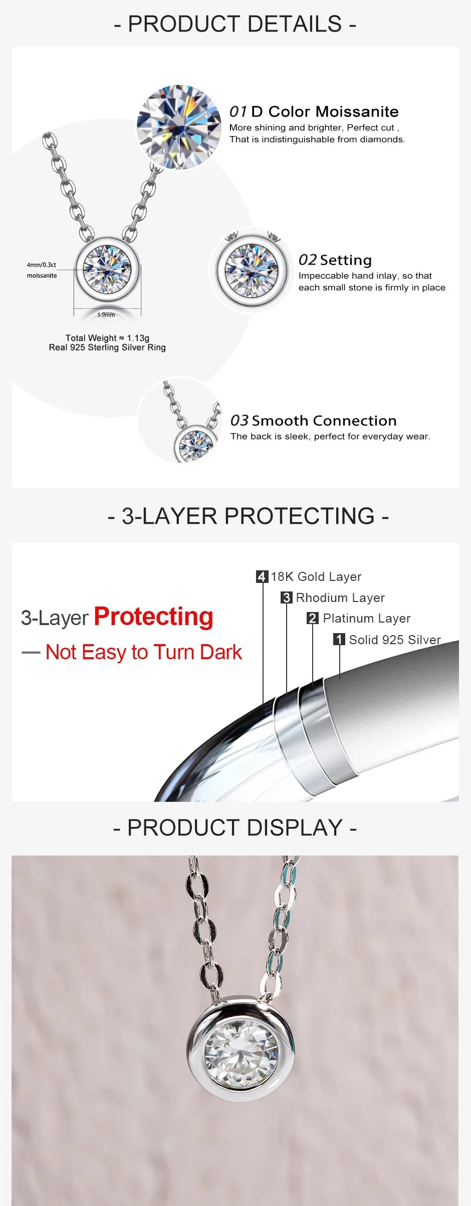 - 4mm Round Brilliant Moissanite: Exceptional sparkle and fire with D Color clarity.