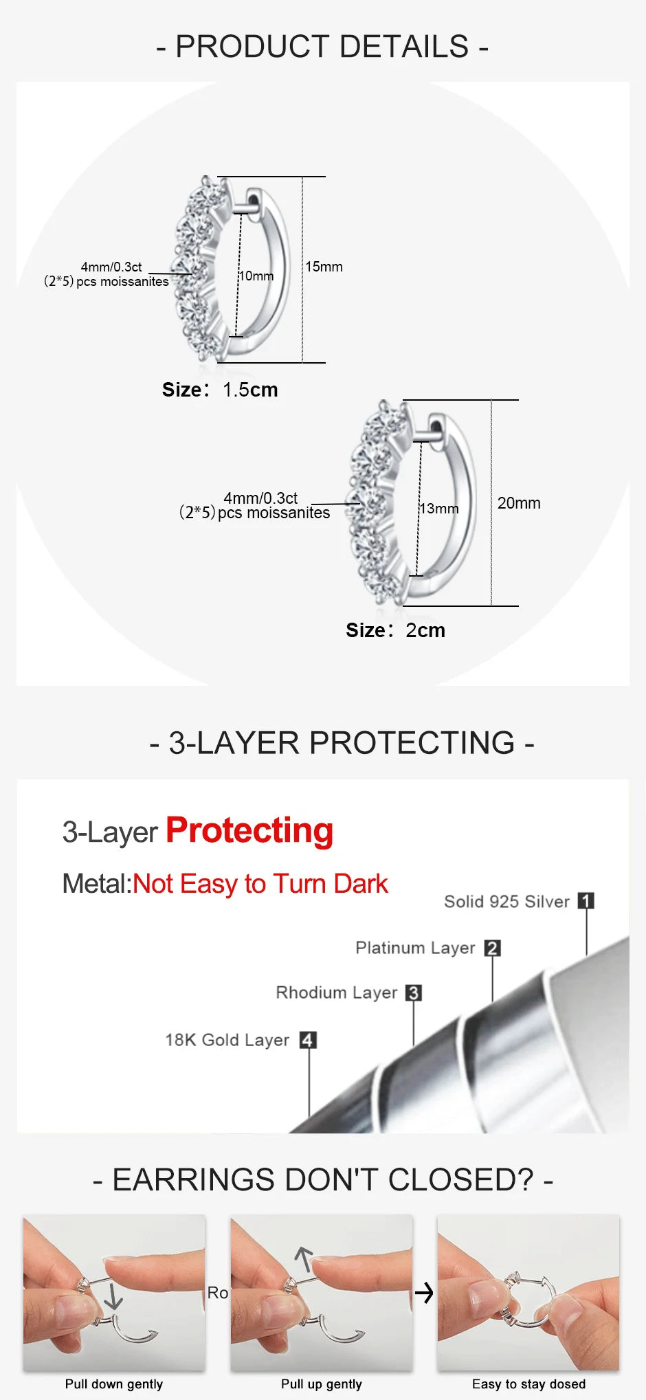 Elevate your elegance with these 4mm D Color Moissanite Huggie Hoop Earrings, crafted in premium 925 Sterling Silver. Featuring a total of 3 carats of dazzling moissanite stones, these luxury huggie earrings offer timeless brilliance and a sleek design, perfect for women who love understated sophistication.