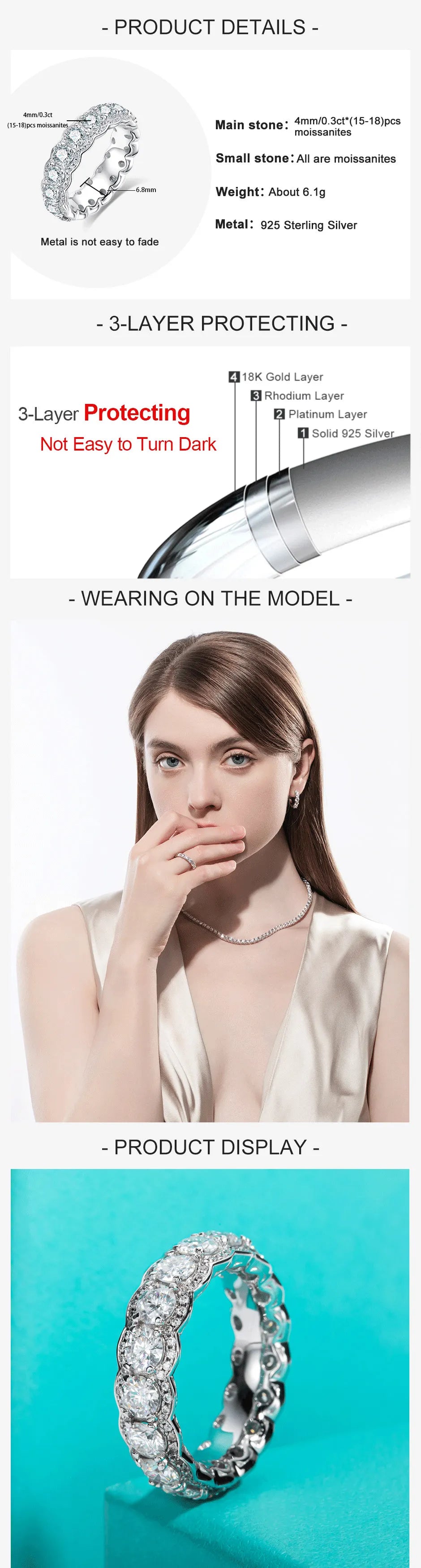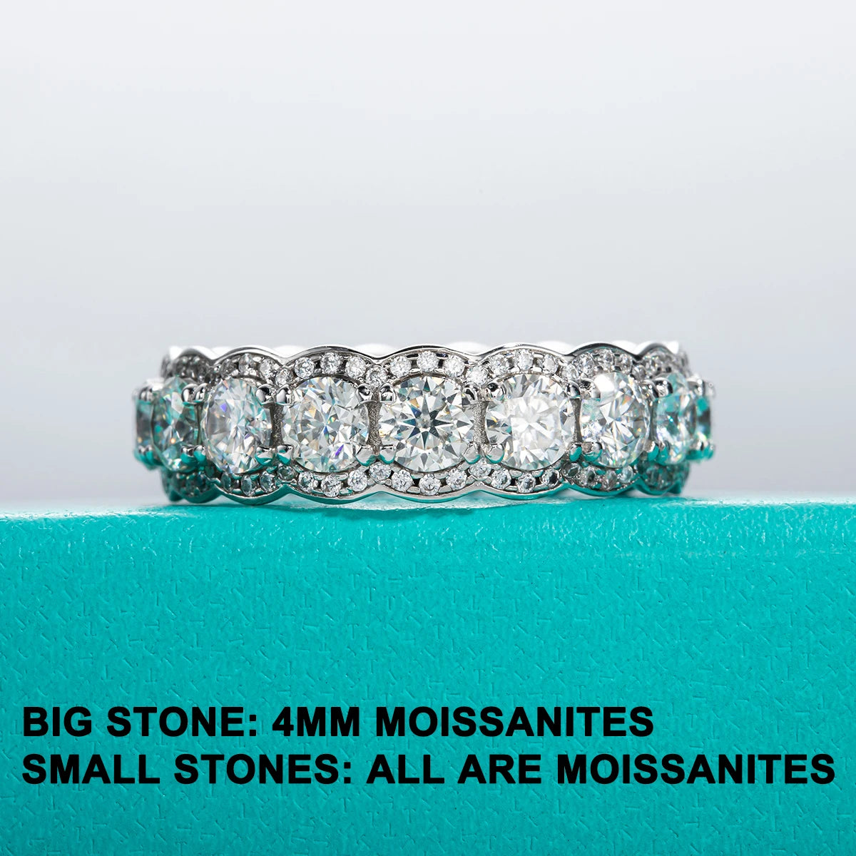 Elevate your jewelry collection with this stunning 4mm Moissanite Wedding Band Ring from GK Moissanites. Featuring 5.5cttw of radiant D Color moissanite stones, this eternity band is crafted in 925 sterling silver for lasting beauty and sophistication. Perfect for weddings, anniversaries, or everyday elegance.