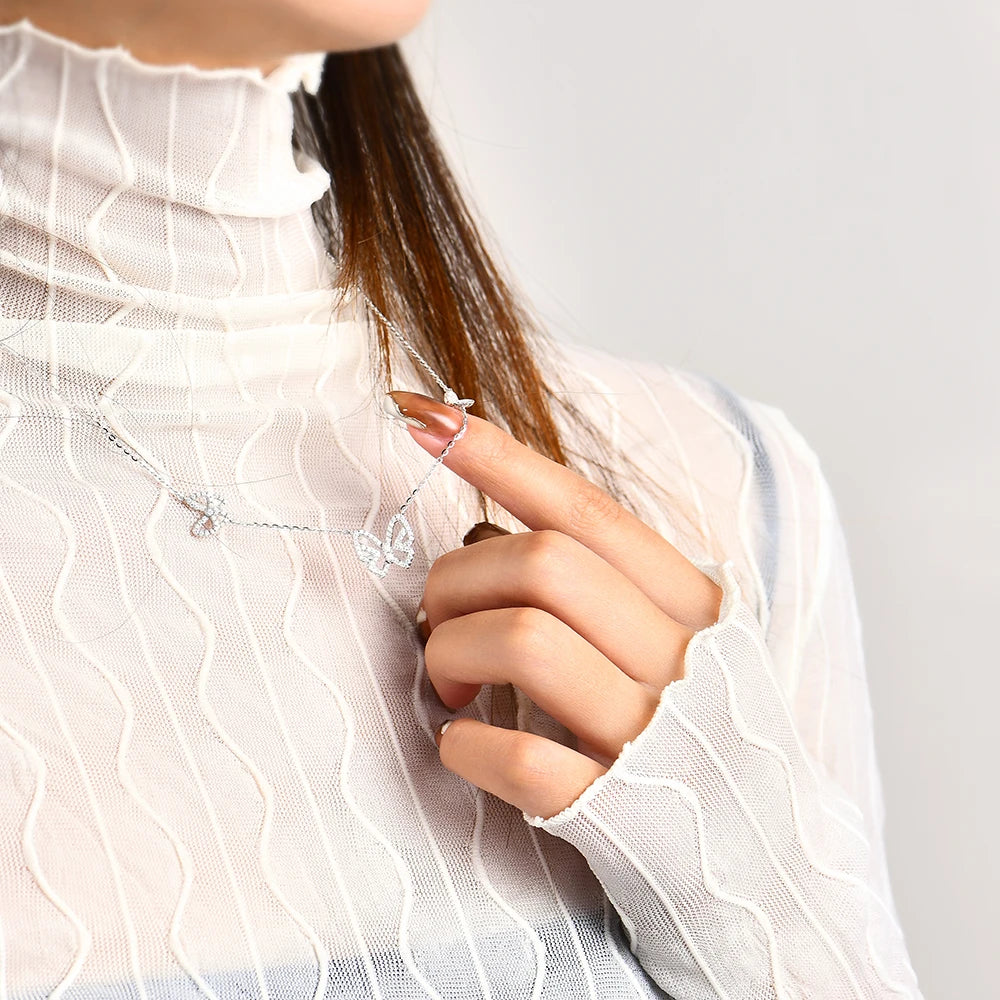 Illuminate your style with the VVS1 D Color Brilliant Cut Butterfly Moissanite Necklace, exquisitely crafted from S925 Sterling Silver. This enchanting necklace features a beautifully designed butterfly pendant adorned with a brilliant cut Moissanite stone, showcasing D color and VVS1 clarity. The butterfly symbolizes transformation and beauty, making this necklace a perfect representation of elegance and grace.