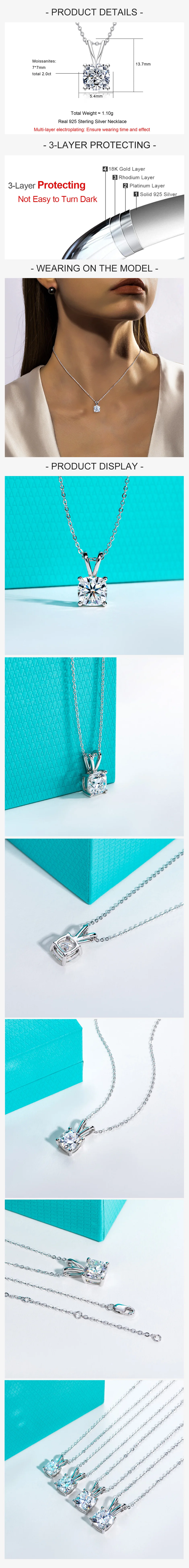 VVS1 D Color Cushion Cut Moissanite Pendant Necklace