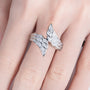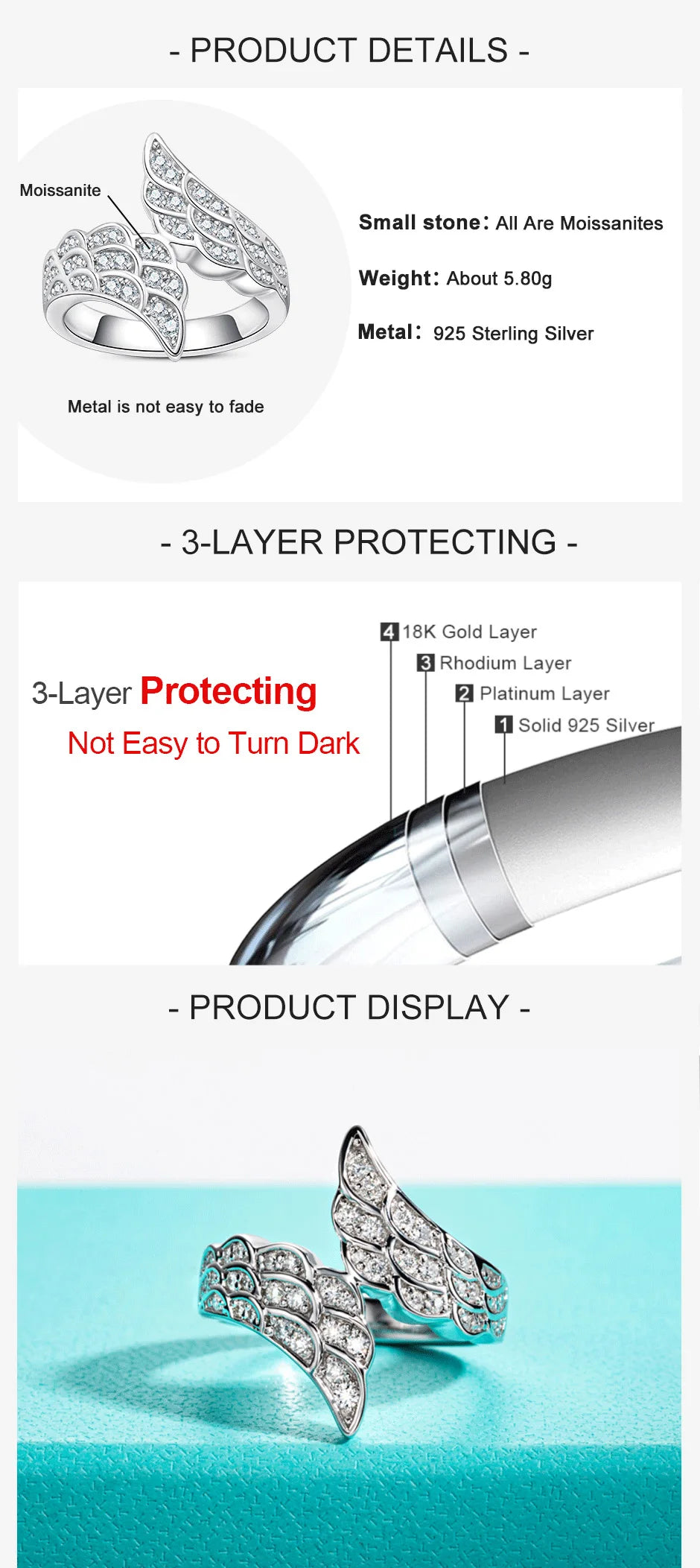 Embrace celestial beauty with the GK Moissanites Angel Wings Wedding Bands. This enchanting set features a pair of bands adorned with delicate angel wing motifs, each meticulously set with sparkling D Color Moissanites. Crafted from 925 Sterling Silver and plated with 18K Gold, these bands exude elegance and sophistication.
