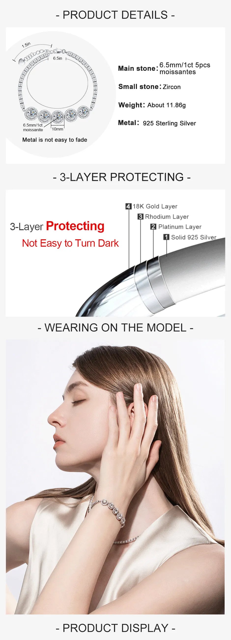 Luxury 5ct D Color Moissanite Tennis Bracelet – Adjustable Wedding Bracelet for Women