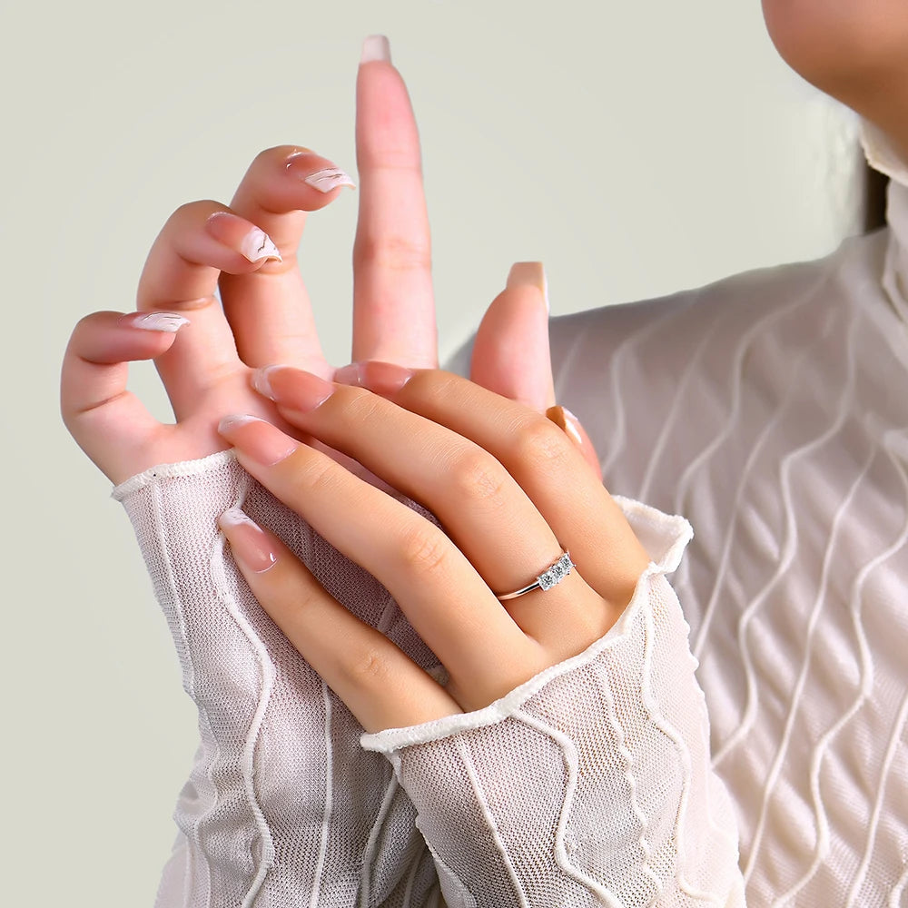 3*3MM 3 Stone Moissanite Promise Ring | Princess Cut