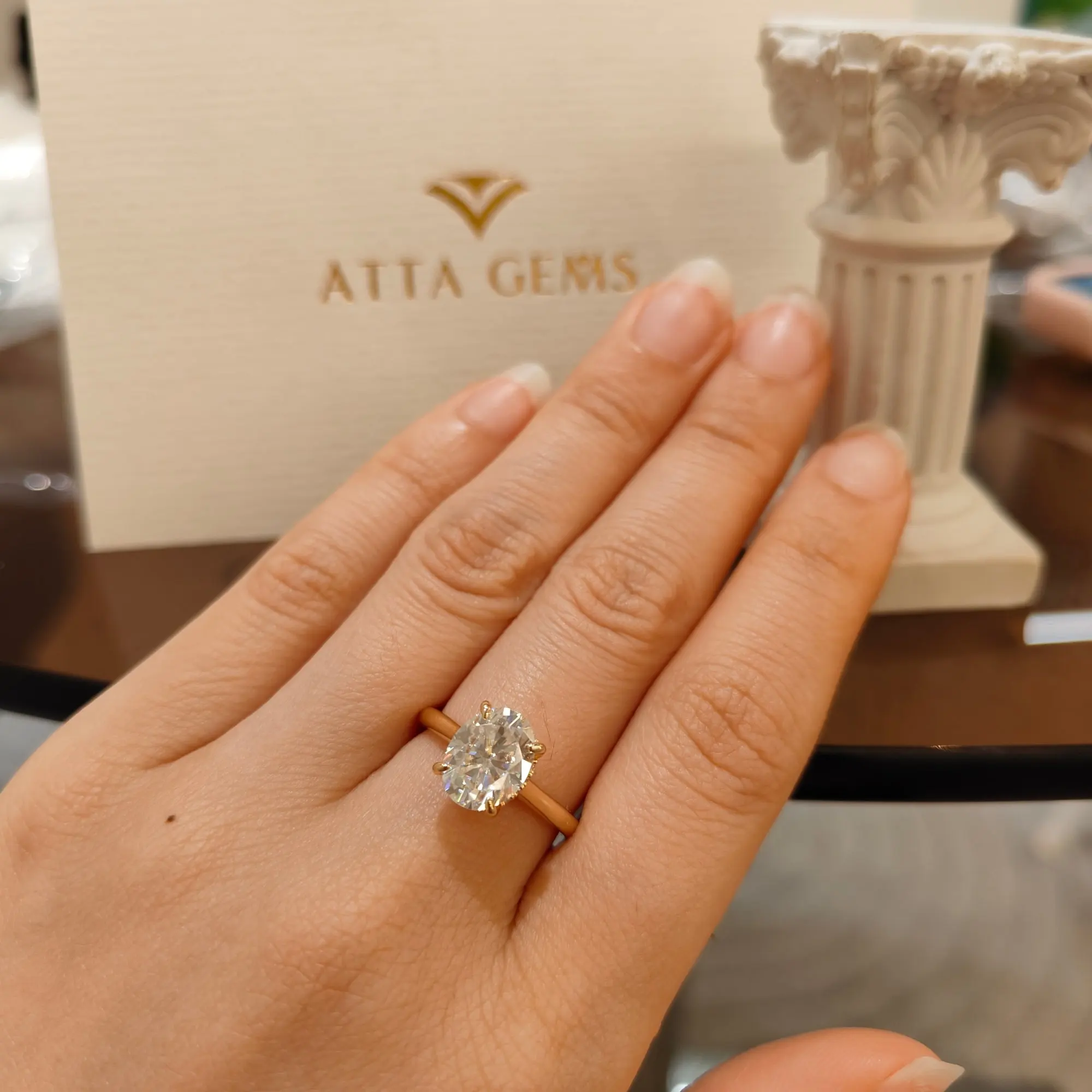 Main Stone: D Color VVS1 Moissanite Diamond, Oval Cut 2.5CT
